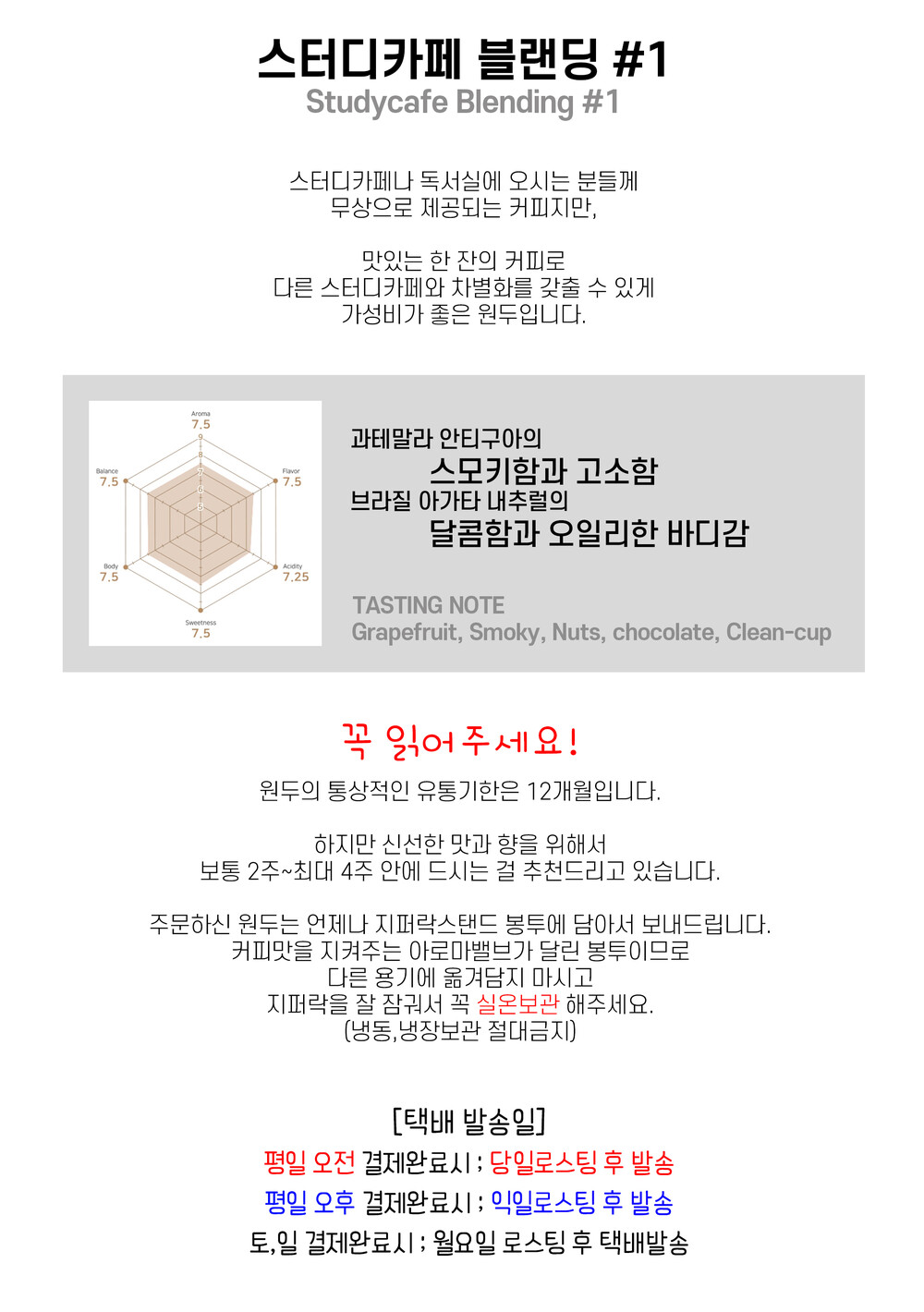 예상 배송기간 : 주문 후 당일로스팅, 익일 발송